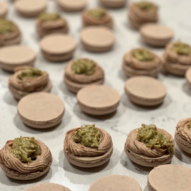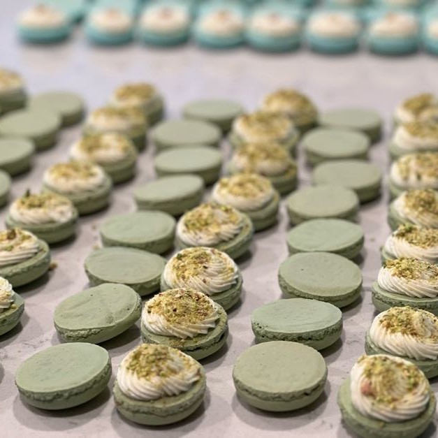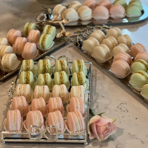 - Handcrafted French macarons in assorted flavors