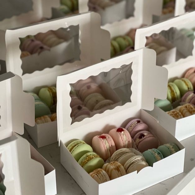 Every box features a variety of flavors, beautifully balanced between sweetness and texture. Whether you’re gifting, celebrating, or simply treating yourself, these macarons are a bite-sized taste of joy and sophistication.